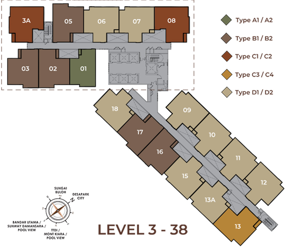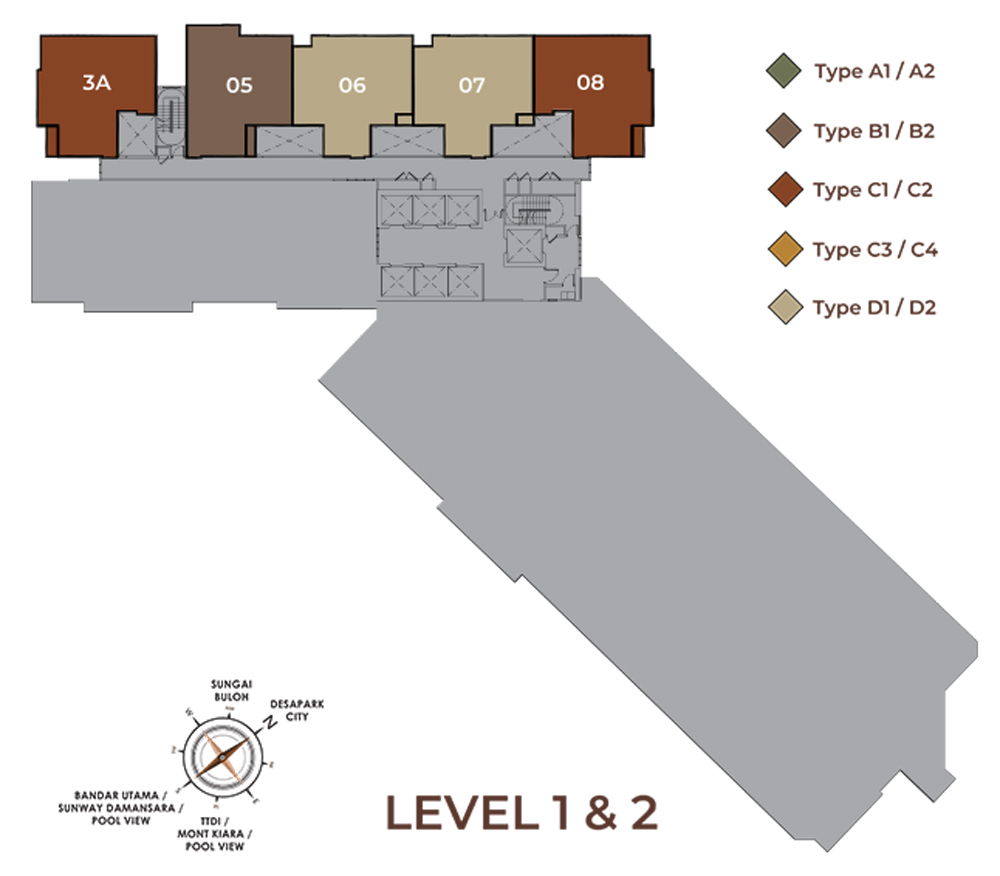 master plan development is thoughtfully designed with a mix of residential, retail, and lifestyle spaces. It includes a sky garden level, a dedicated facilities floor on Level 1, four podium levels of car parks, and five basement and lower-ground levels to accommodate residents, visitors, and retail needs.